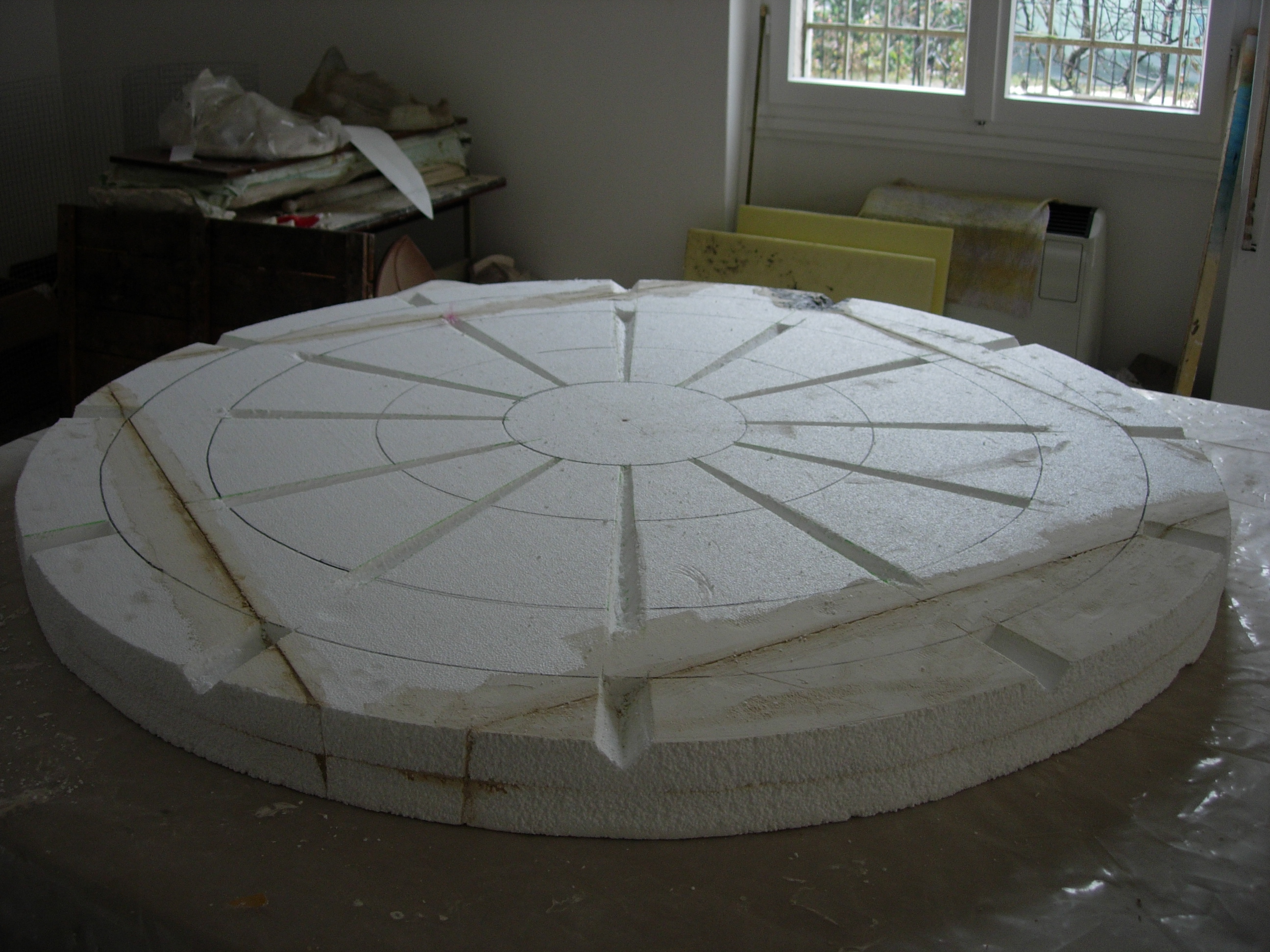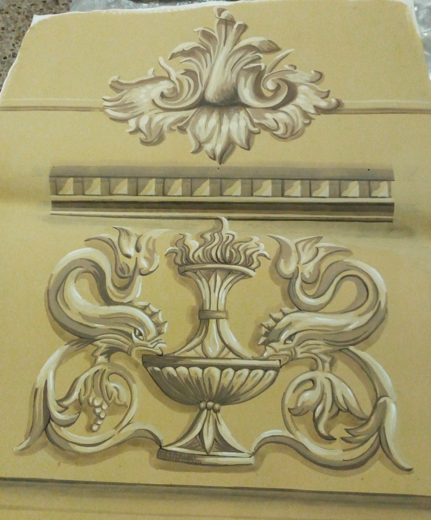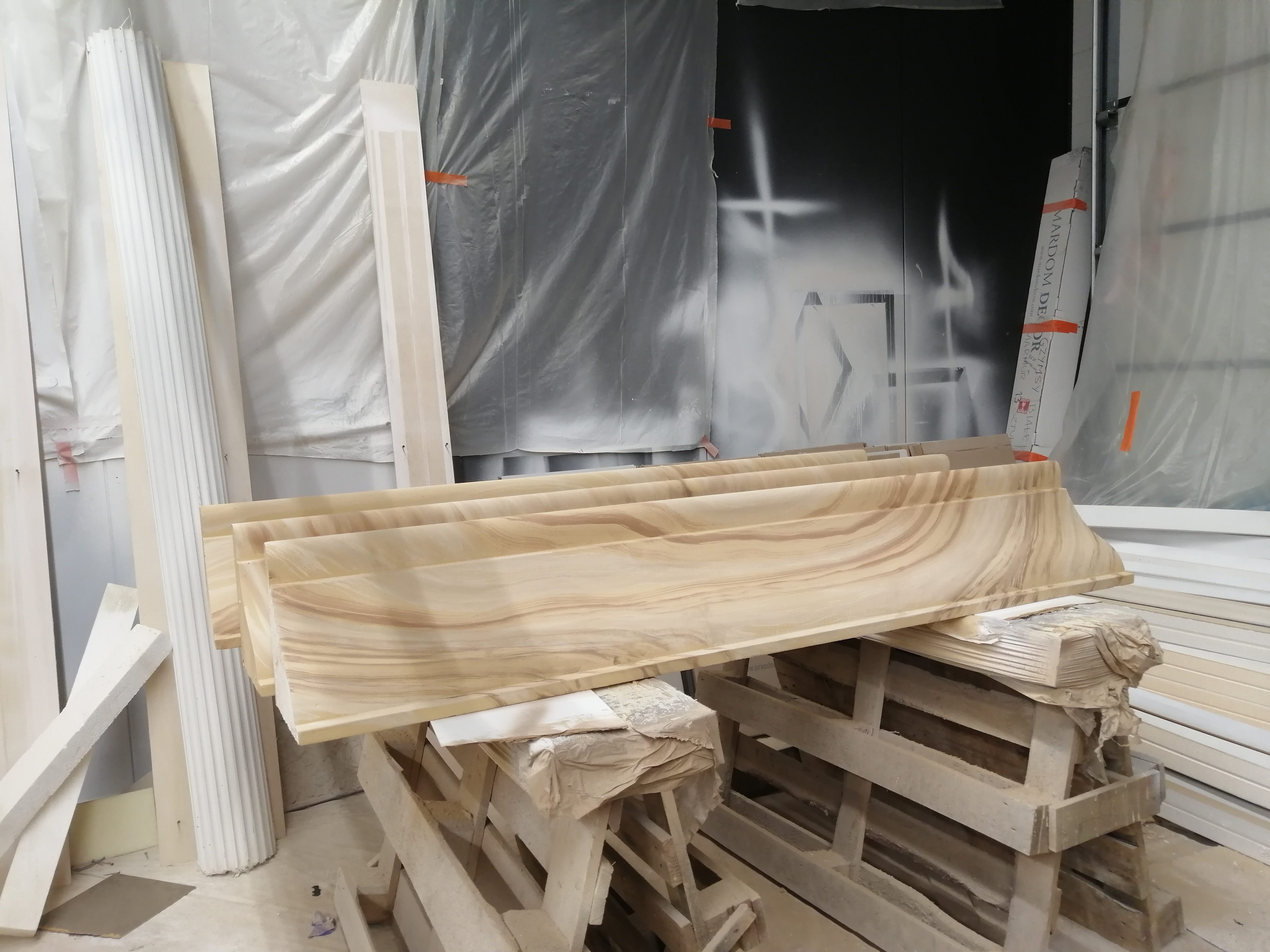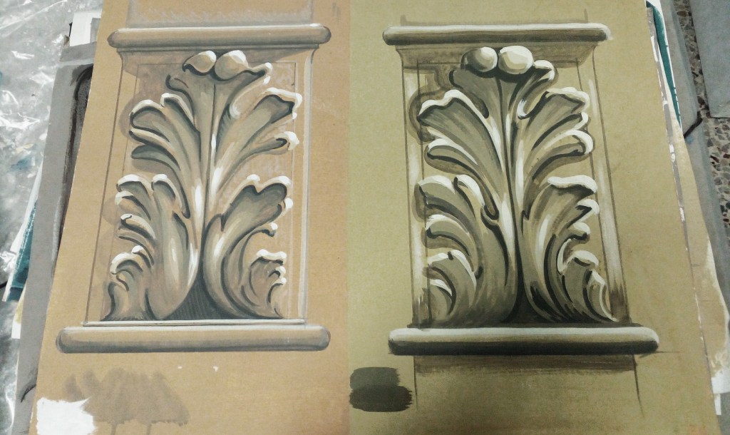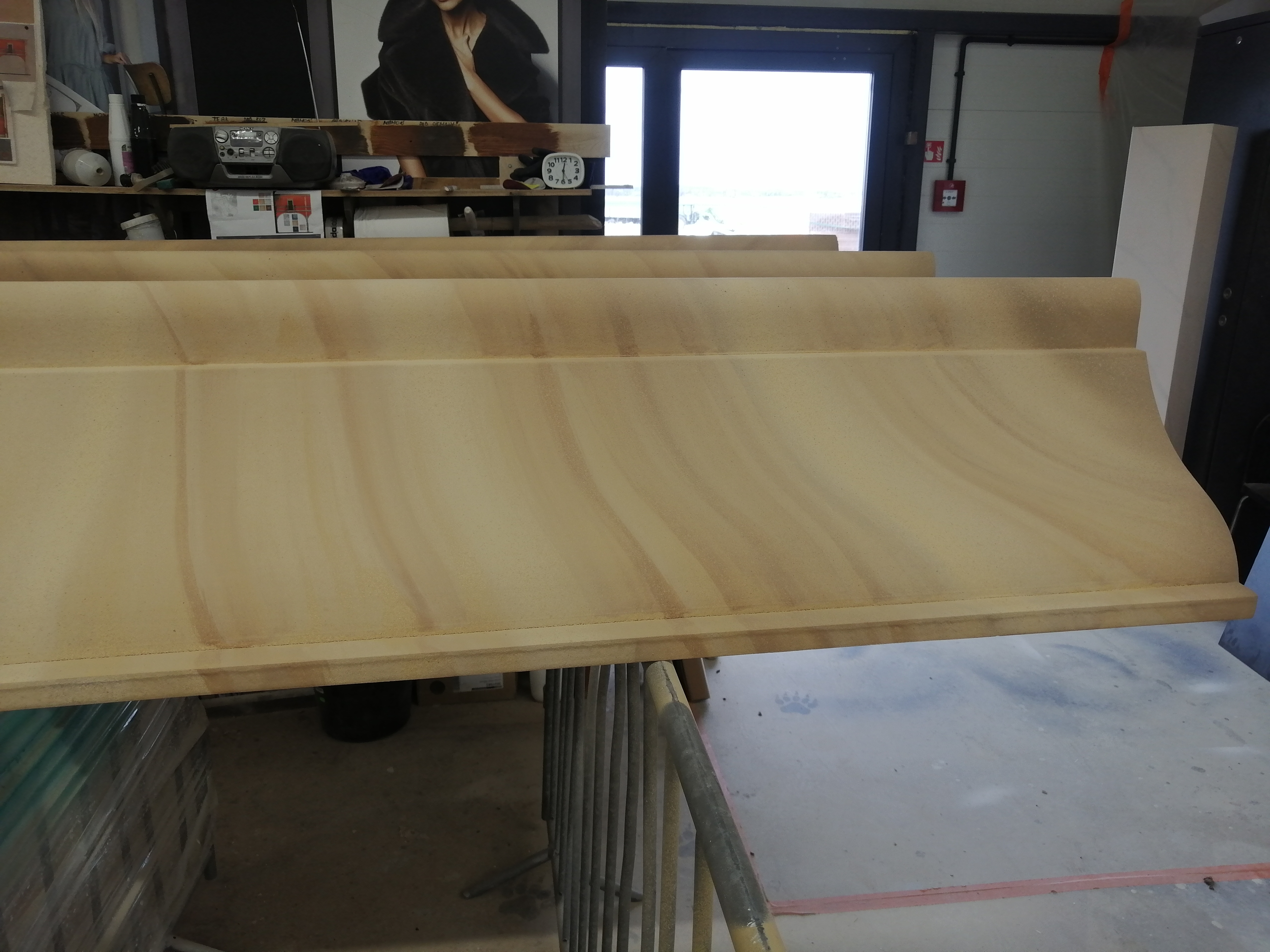 Elementi decorativi per Acquascivoli – (fasi di lavorazione) EPS indurito con resina epossidica dipinta, per New Dieresin srl.