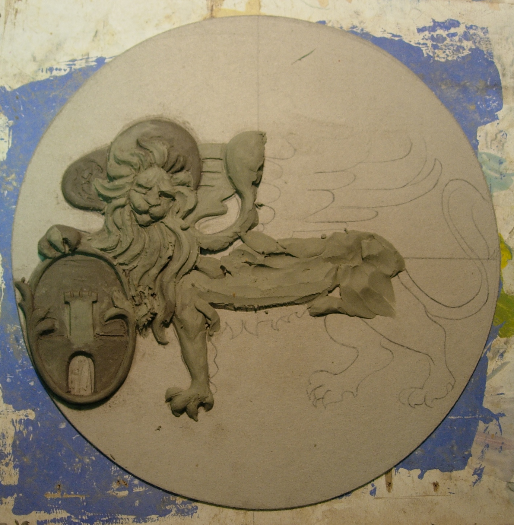 Stemma Famiglia Nodari – modello in EPS e plastilina, finale in Geolite effetto pietra di Sarnico, smalti e foglia bronzo.