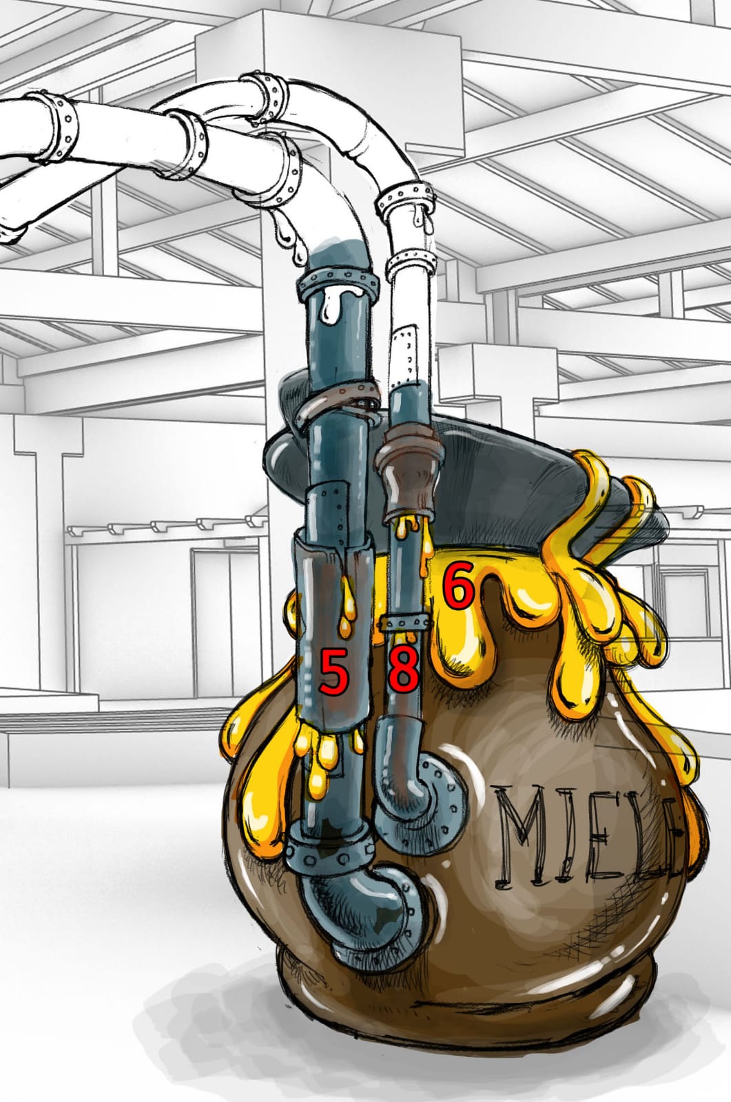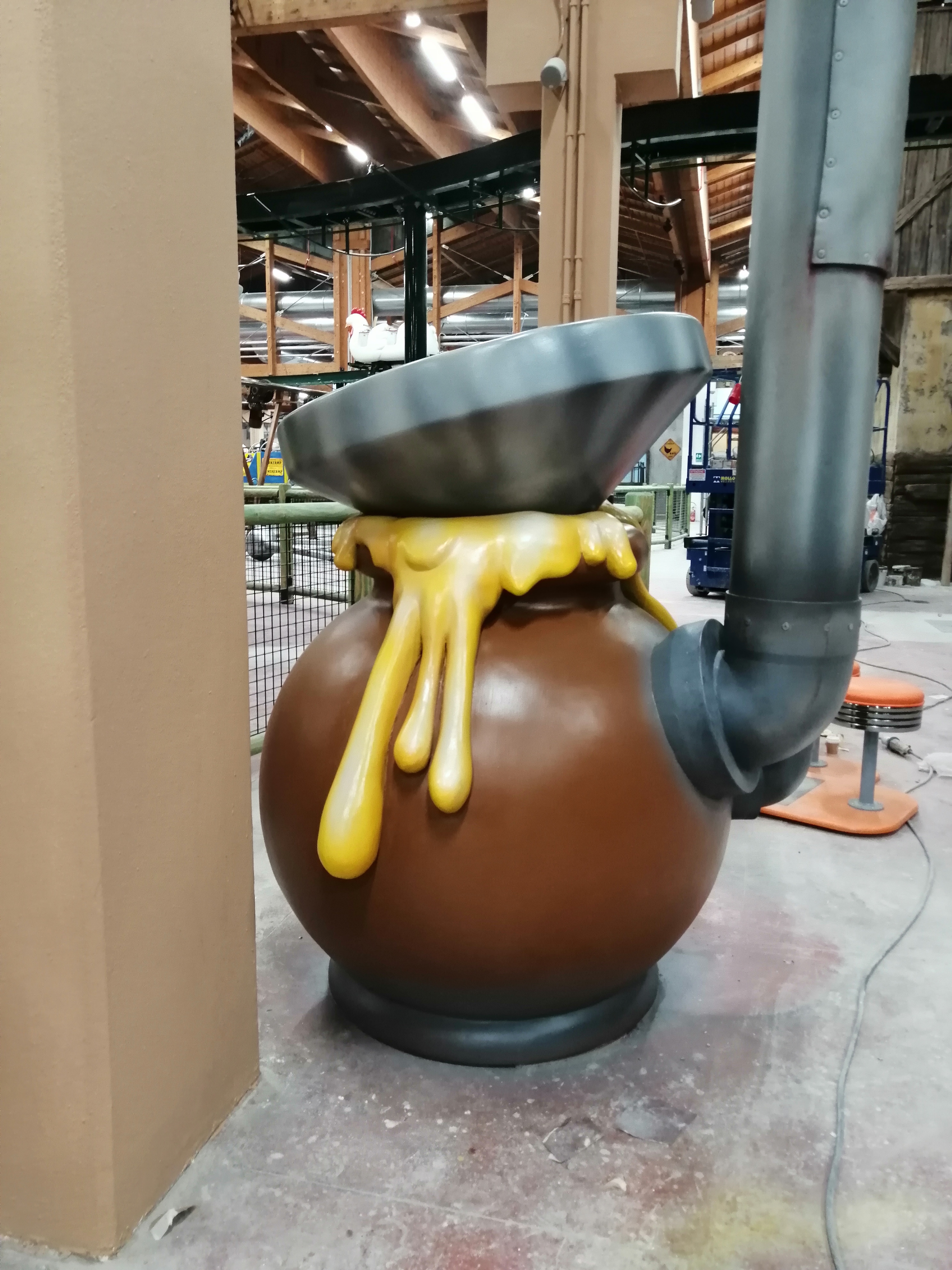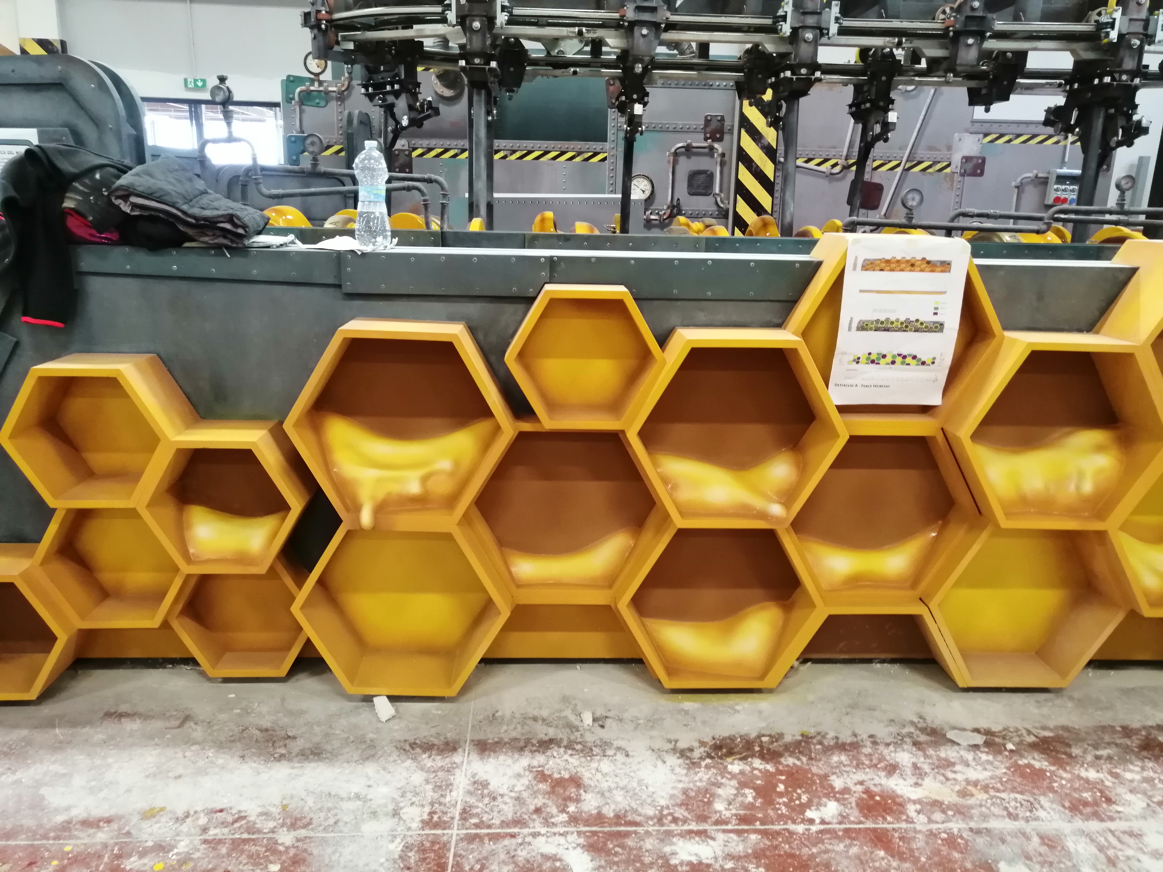 La Fabbrica Del Miele presso LunaFarm – pannelli in MDF dipinti effetto metallo invecchiato, EPS indurito e dipinto Scenografia a FICO Bologna per Zamperla group Team Park Project. (opere eseguite per l’azienda aggiudicataria dell’appalto)