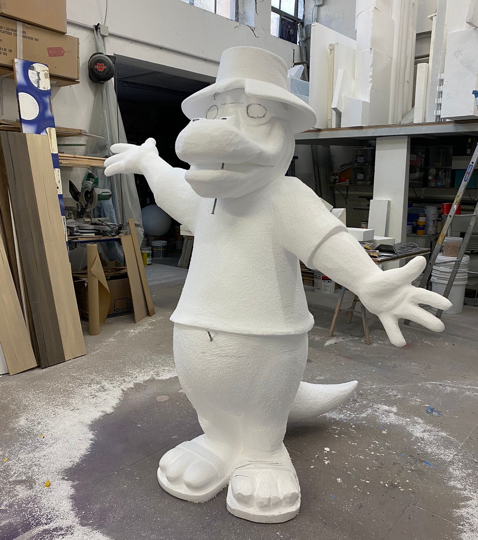 Mr. Drillo Mascotte per Centro Summerland – (fasi di lavorazione) personaggio in EPS e resina epossidica dipinta per Acquafert srl.