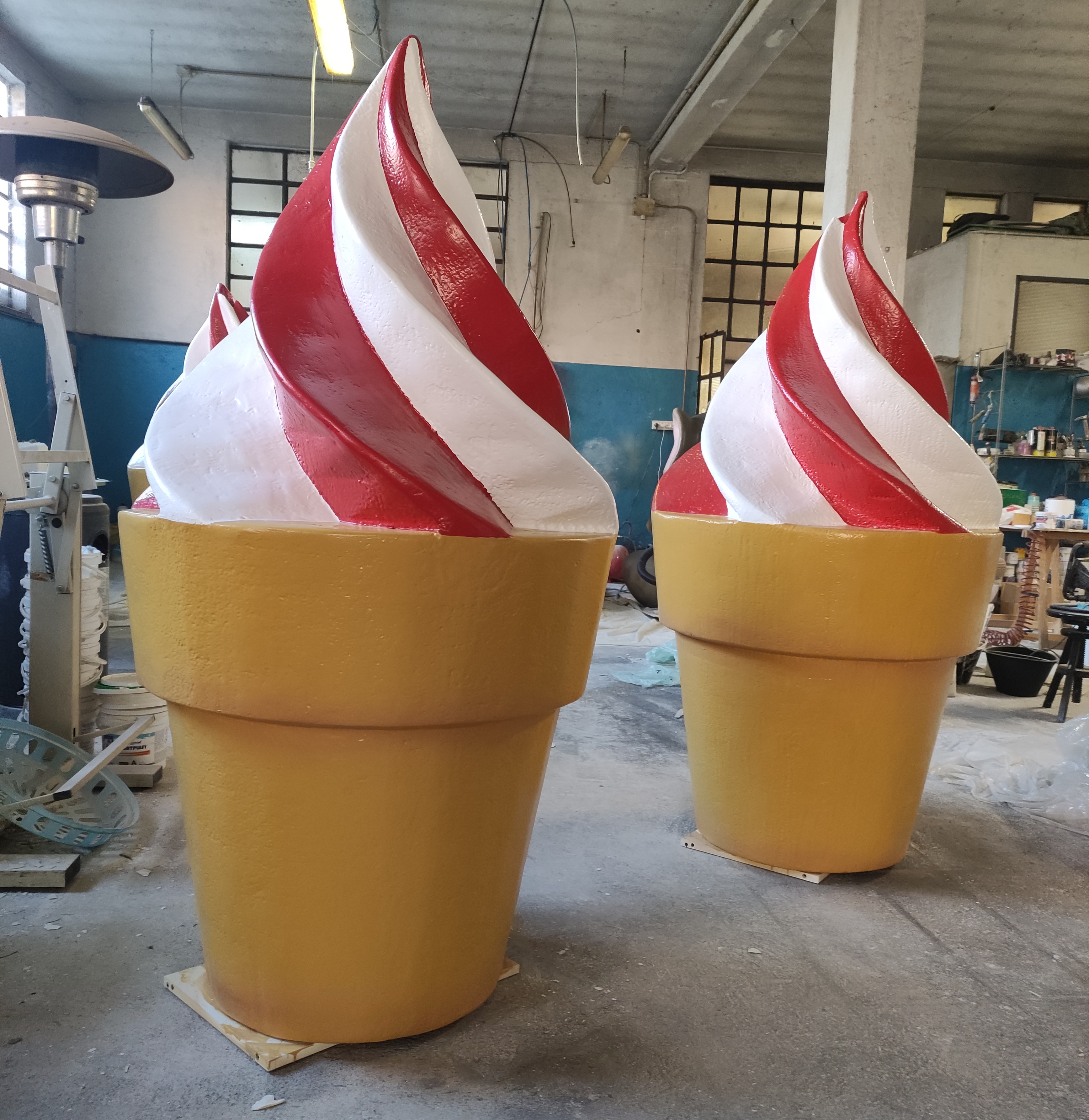 Soggetti in vetroresina dipinta a spruzzo con Gelcoat , specifico per contatto e immersione in acque clorate – Per New Dieresin srl