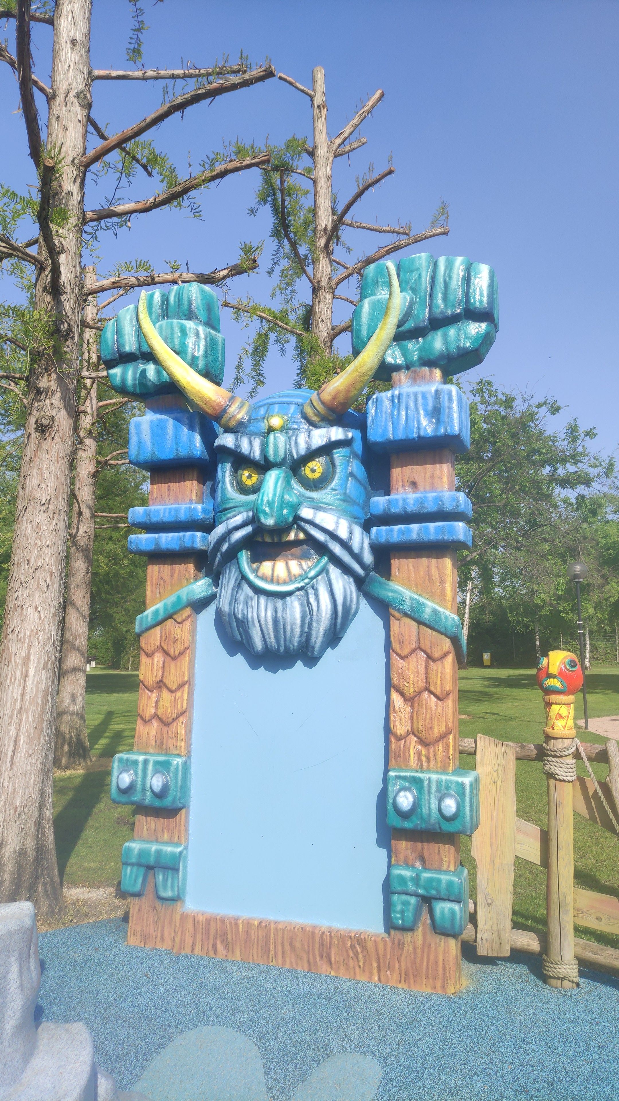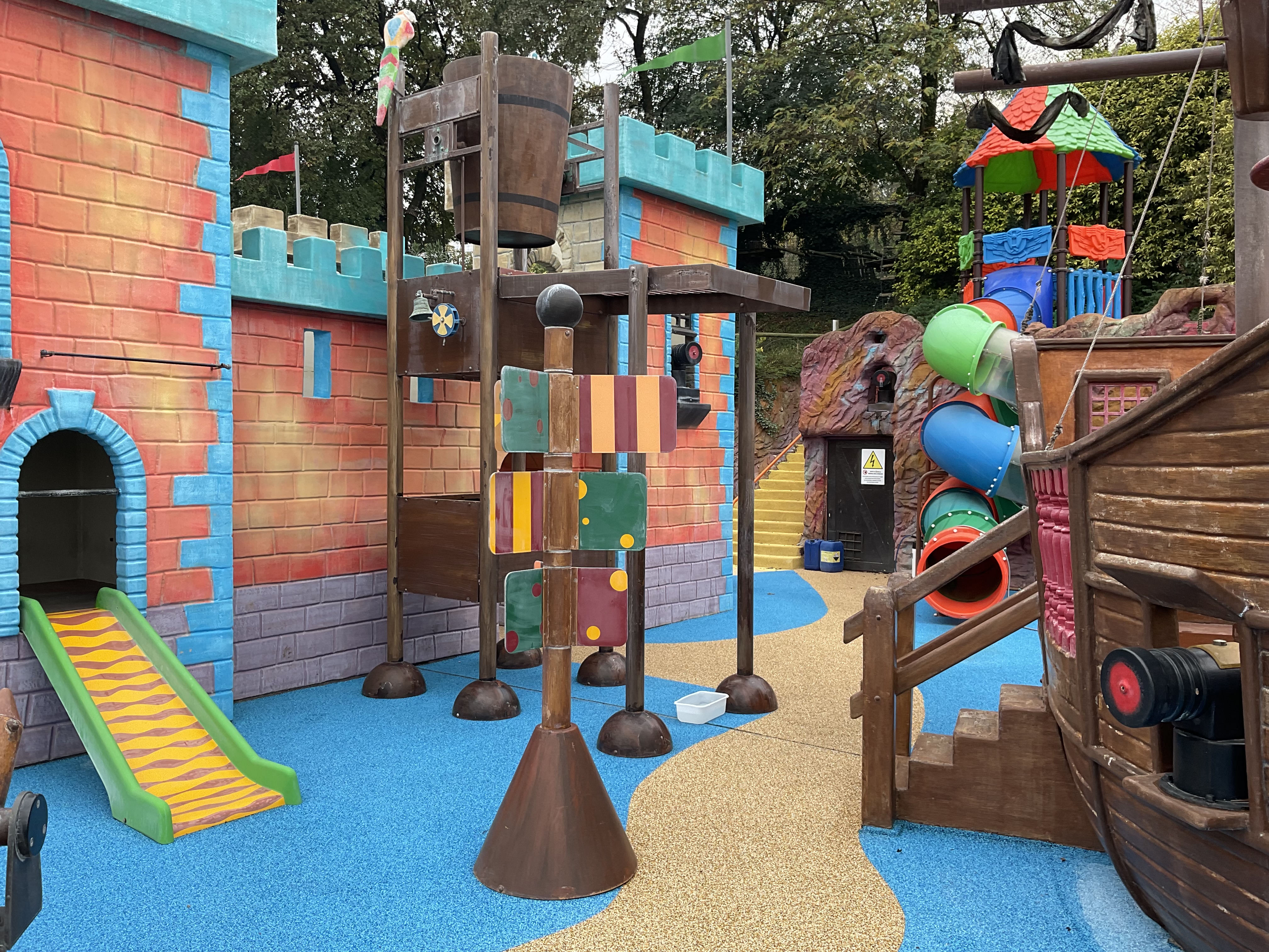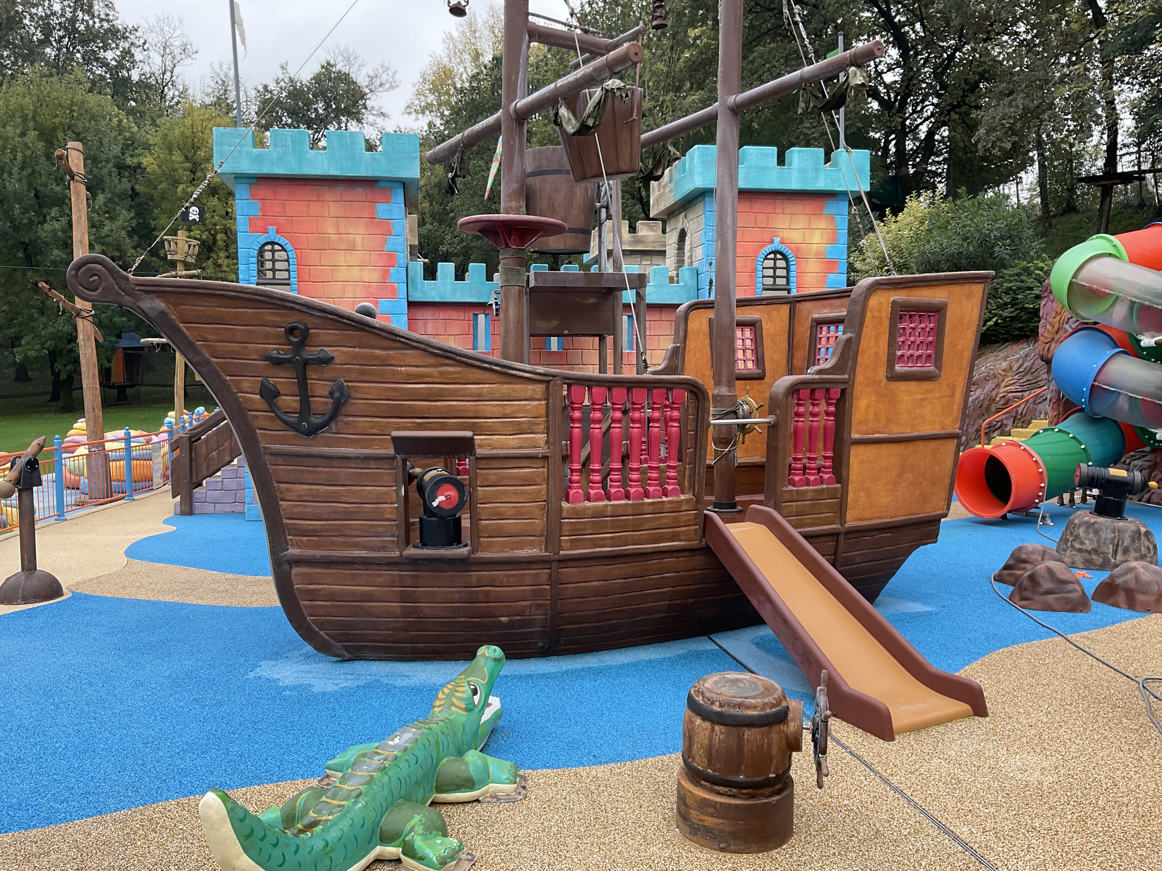 La Cova Dei Pirati – Elementi in vetroresina e metallo spraypark – (Prima e dopo) Ridipintura e decorazione a spruzzo e pennello, Restyling concept di CreativeApp , presso La Quiete Adventure Park